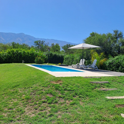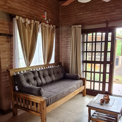 CARACTERISTICAS Cabaña de 3 ambientes para 4/5 personas. 2 dormitorios 1 living, cocina-comedor y 1 baño. La cabaña posee una galería con mesa y reposeras. 1 quincho externo con parrilla de uso exclusivo. 1 amplia pileta al aire libre de uso exclusivo de 8×3 mts. EQUIPAMIENTO 1 Smart Tv “43 en living comedor 1 Smart Tv “32 en cada habitación (Directv) Aire acondicionado frio/ calor en dormitorio principal. Salamandra Ventiladores de techo en cada habitación. Las camas son somiers. 1 cocheras semicubiertas 1 Heladera con freezer. Cocina con horno, microondas, horno eléctrico, tostadora, licuadora, cafetera de filtro, pava eléctrica. Utensilios de cocina. Reposeras y 1 sombrillas 1 secador de pelo. 1 Armario con barral y perchas en cada habitación. SERVICIOS INCLUIDOS Ropa blanca Servicio de limpieza Mantenimiento de pileta. Caja de seguridad Wi-fi – gratis LEGALES Check in 15:00 PM Check out 10:00 AM FORMAS DE PAGO 50 % Reserva por medio de transferencia o depósito Bancario, el saldo lo abonas al ingresar. Aceptamos Mercado Pago – Consultar al whatsapp Aceptamos Previaje – Consultar al whatsapp GALERÍA DE FOTOS Altos de San Blas 1 es una confortable cabaña de ladrillos vistos, ubicada sobre una arboleda autóctona con vista a las imponentes sierras.